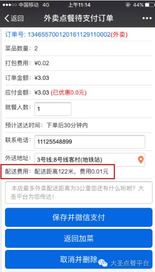 设置完成门店地址后,系统可以通过顾客地址自动计算配送距离